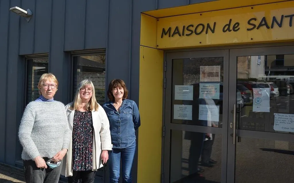 Katia Bariller, Mireille Viloteau, présidente du comité d’échelon local MSA de Saint-Calais (Sarthe), et Marina Louveau, animatrice territoriale santé VBA, lors de l’inauguration de l’exposition itinérante, fin mars. © Ouest-France