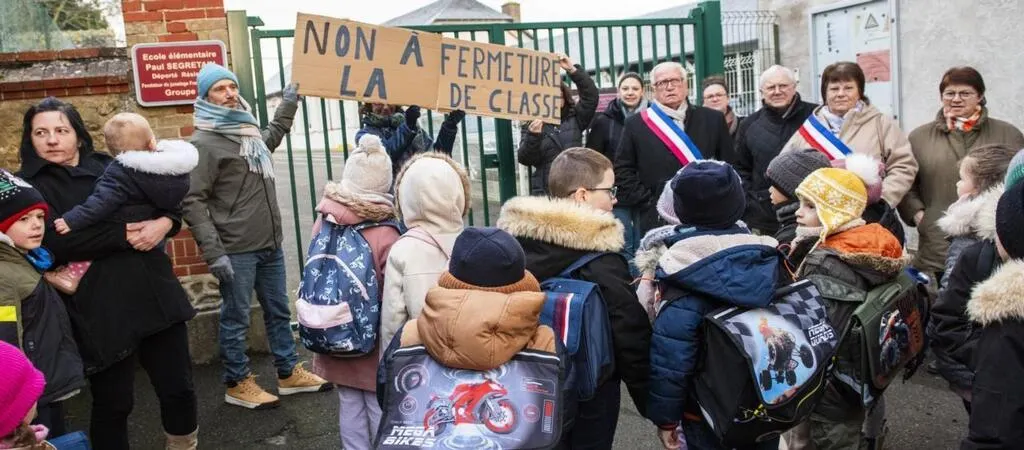 Les parents d’élèves, le maire et les adjoints au maire protestent contre la fermeture d’une classe © Le Maine Libre