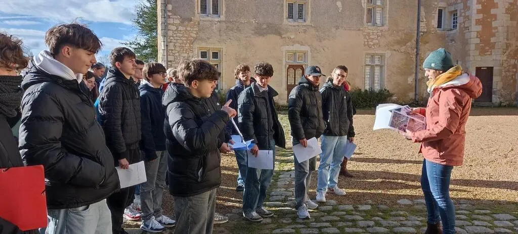 Les lycéens ont été accueillis par Tiphaine Boulay, guide conférencière au château de Courtanvaux, pour un bref rappel historique des lieux, dans la cour d’honneur, devant les terrasses en rénovation depuis 2018. Précisément là où se trouvaient autrefois les bustes à l’antique.