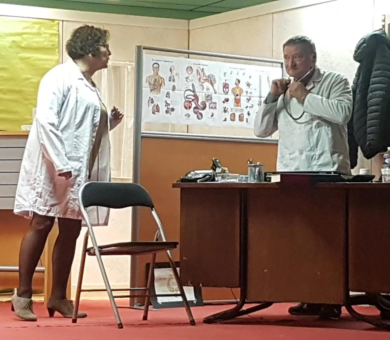 Après l’entracte, la seconde partie avec une comédie de Jean-Jacques Langouët, « Docteur Gemal ». Des patients plus atypiques les uns que les autres sont en consultation dans le cabinet du docteur Gemal à qui il faut bien du courage pour faire face à autant de situations inattendues.