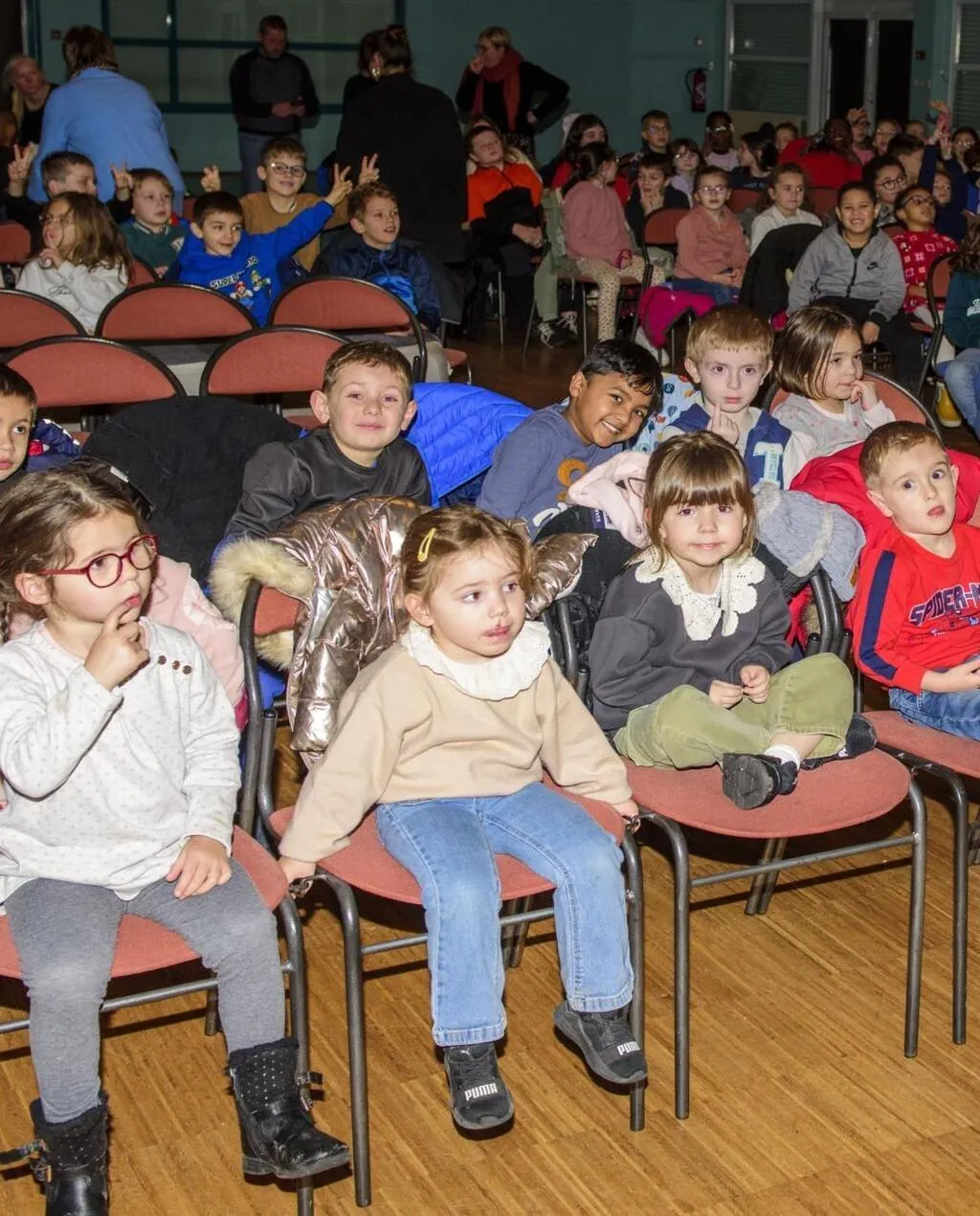 Pas moins de 160 élèves ont assisté au spectacle de Noël offert par la municipalité. © Le Maine Libre
