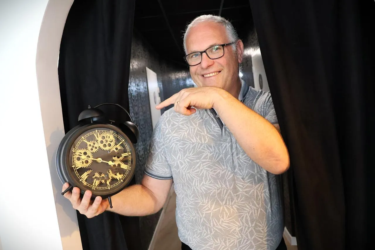 Flavien Kleber, 53 ans, a ouvert son escape game L’Espace temps à Sablé-sur-Sarthe mercredi 22 octobre 2025. © Ouest-France
