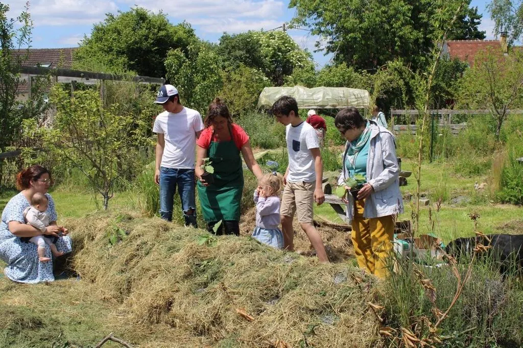 En plus de la visite détaillée des lieux, les visiteurs ont expérimenté la construction d’une butte.  Cette technique à plusieurs avantages. Elle permet de se passer de labour sur un sol devenu très dur ou trop gorgé d’eau. Nous avons planté dessus le résultat de nos semis de printemps.Â
