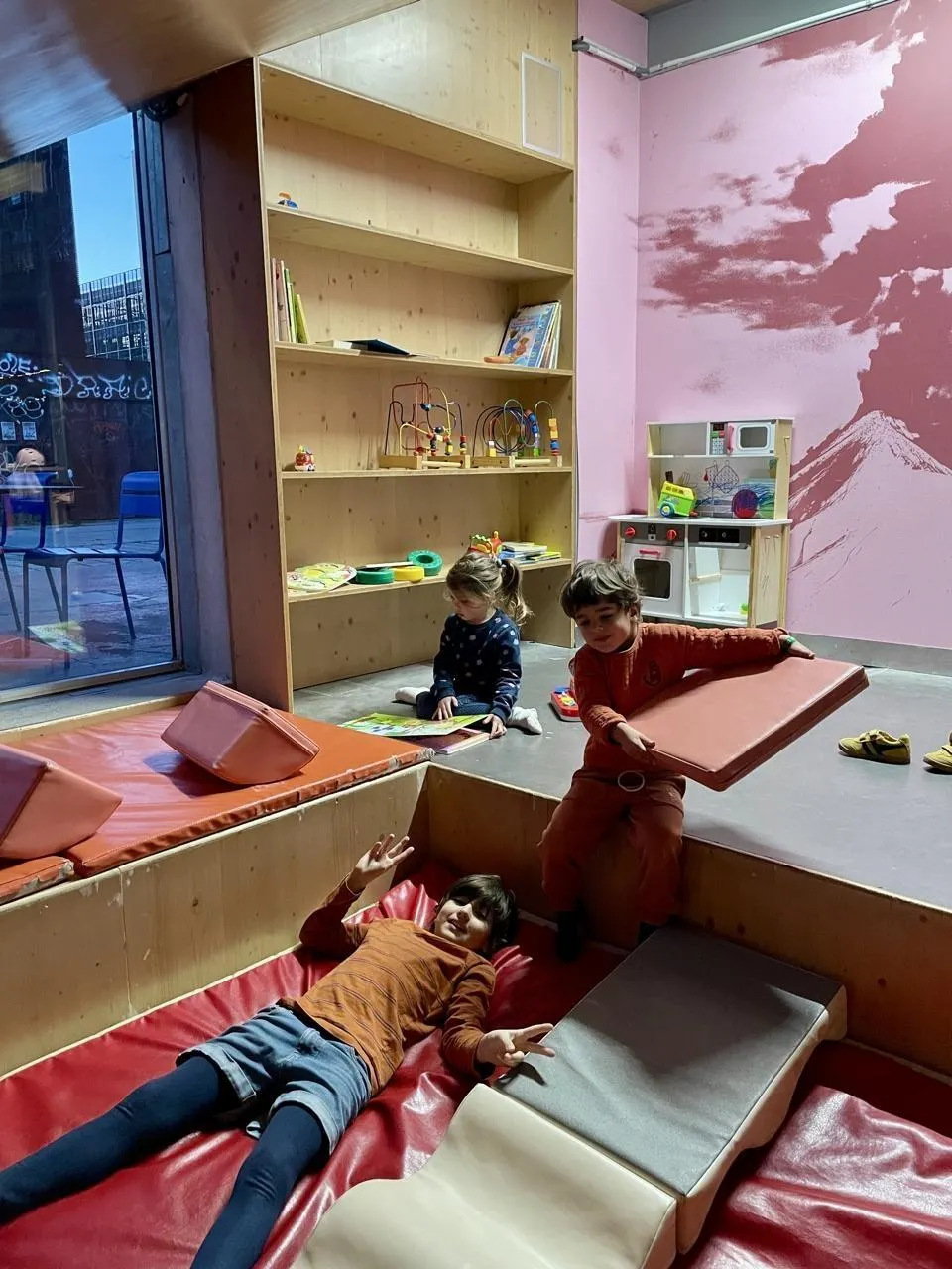 Attention, ça décoiffe ! Sous l’escalier du food hall Magmaa, les enfants peuvent s’amuser (et se défouler !) sur un gros matelas rouge. Il y a aussi une petite cuisine, des livres et des jeux pour occuper les p’tits. Spot parfait pour siroter un verre quand il fait beau, ici, pas de voitures à circuler, les enfants peuvent facilement faire de la trottinette ou du vélo dans l’allée Frida-Kahlo.