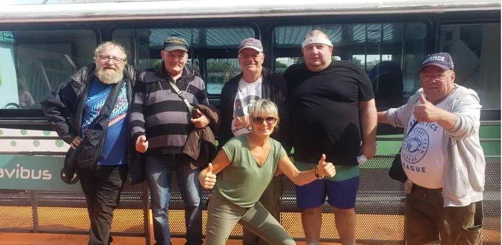 Carole Jarrier avec des résidents de la Maison relais de Bonnétable, tous prêts à animer la randonnée musicale de l’association Tarmac. © Le Maine Libre