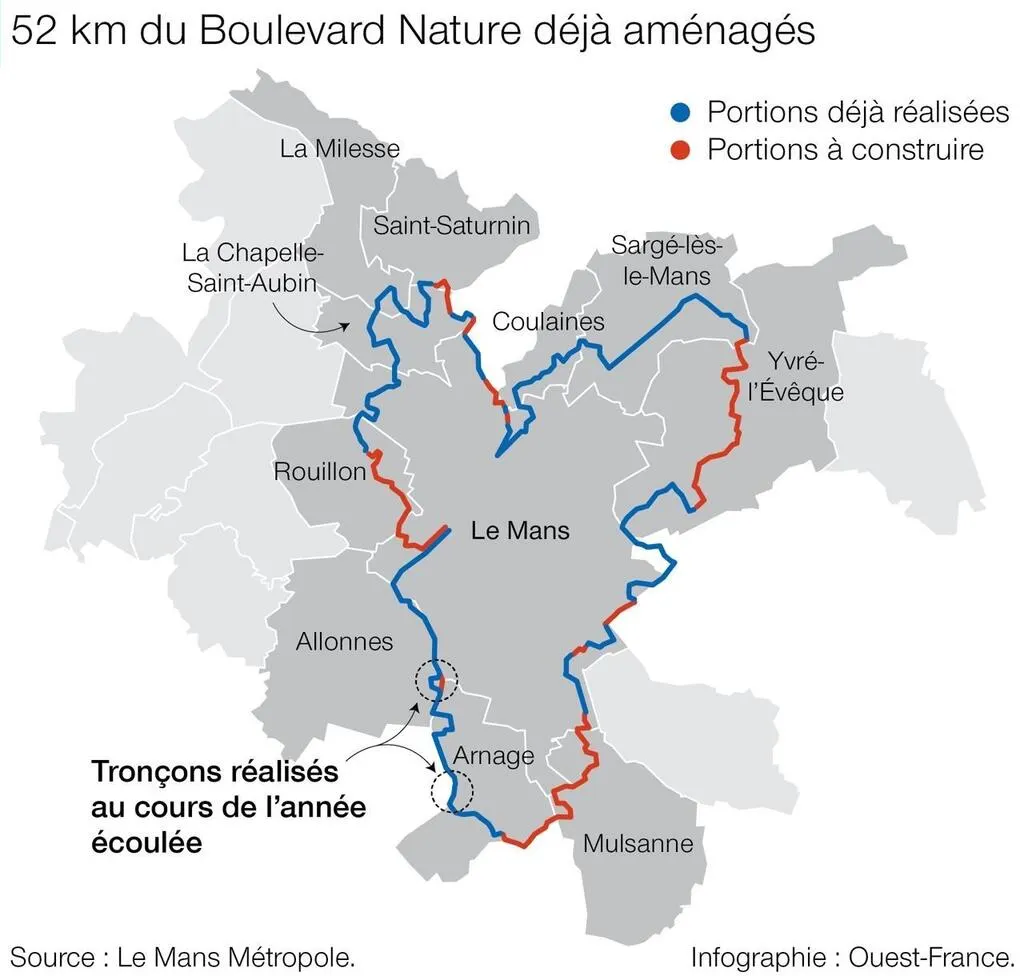 Le projet du Boulevard nature a été lancé en 2001. La boucle au Mans et ses alentours, de plus de 72 km, devrait être finalisée en 2025. © Archives Ouest-France