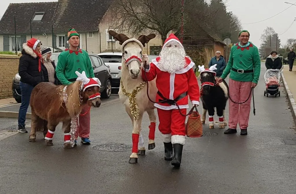 À l’initiative du comité des fêtes, le Père Noël a fait, dimanche, son arrivée dans le bourg, afin de rencontrer les enfants du village. Il a défilé dans plusieurs rues du village, escorté par bon nombre d’enfants tenant au licol un âne, décoré aux couleurs rouges et blanches. Les lutins se sont joints au cortège avec deux magnifiques poneys, parés eux aussi aux couleurs de Noël. Pour conclure cette traditionnelle rencontre, les enfants étaient accueillis au bar local ou étaient offerts un goûter servi par les organisateurs. © Ouest-France