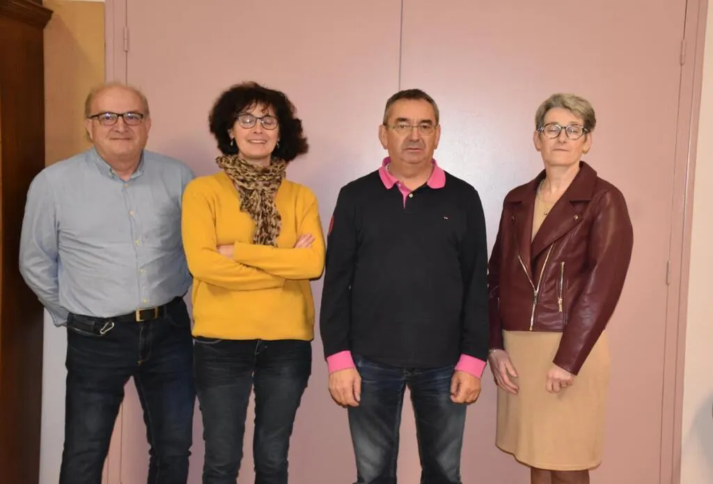 De gauche à droite : Sylvain Cabaret (maire adjoint), Sylvie Viardin (présidente), Laurent Bothereau (maire), Mireille Poupon (maire adjointe) © Le Maine Libre