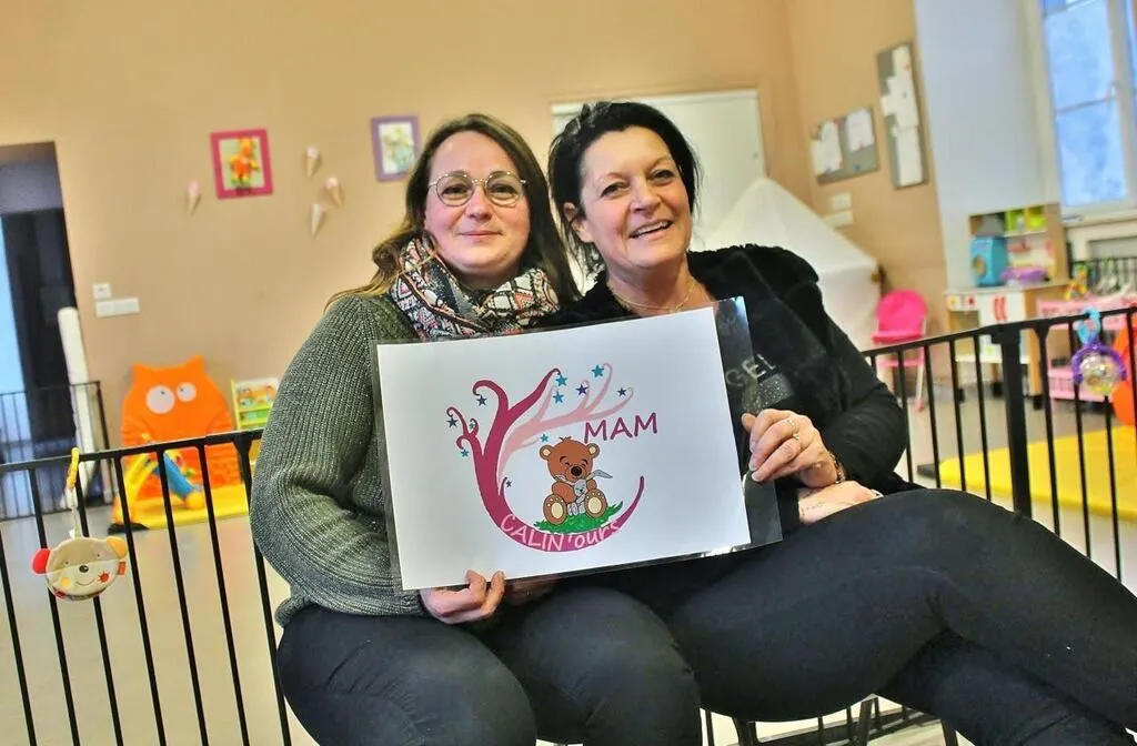 Angélina Trohel et Séverine Dubois sont les deux assistantes maternelles de la MAM de Juigné-sur-Sarthe (Sarthe), fraîchement rebaptisée Calin’ours. © Ouest-France