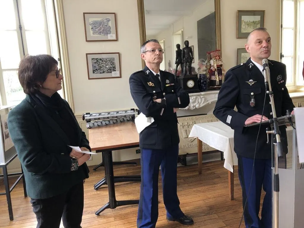 De gauche à droite, la maire de La Flèche (Sarthe), Nadine Grelet-Certenais, le major Gérald Richard, commandant de la brigade territoriale autonome de La Flèche, et le commandant Frédéric Boucheron, commandant de la compagnie de La Flèche. © Ouest-France