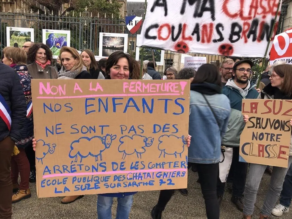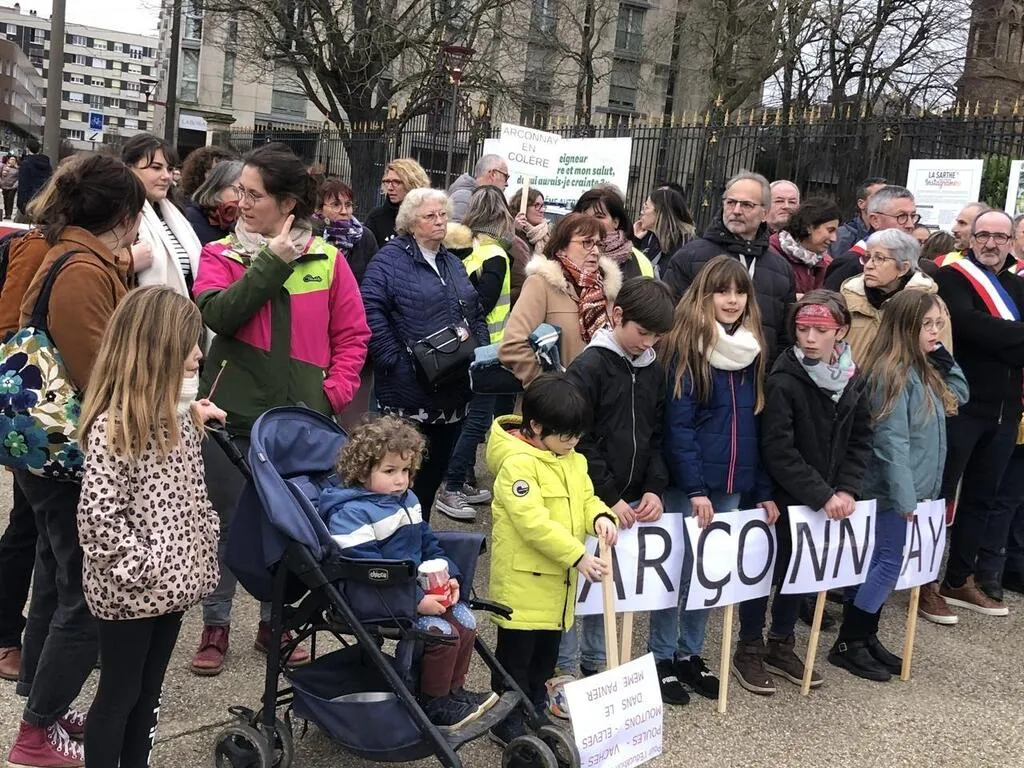Carte scolaire en Sarthe. Une centaine de parents et d’élus manifestent contre les 40 fermetures... |