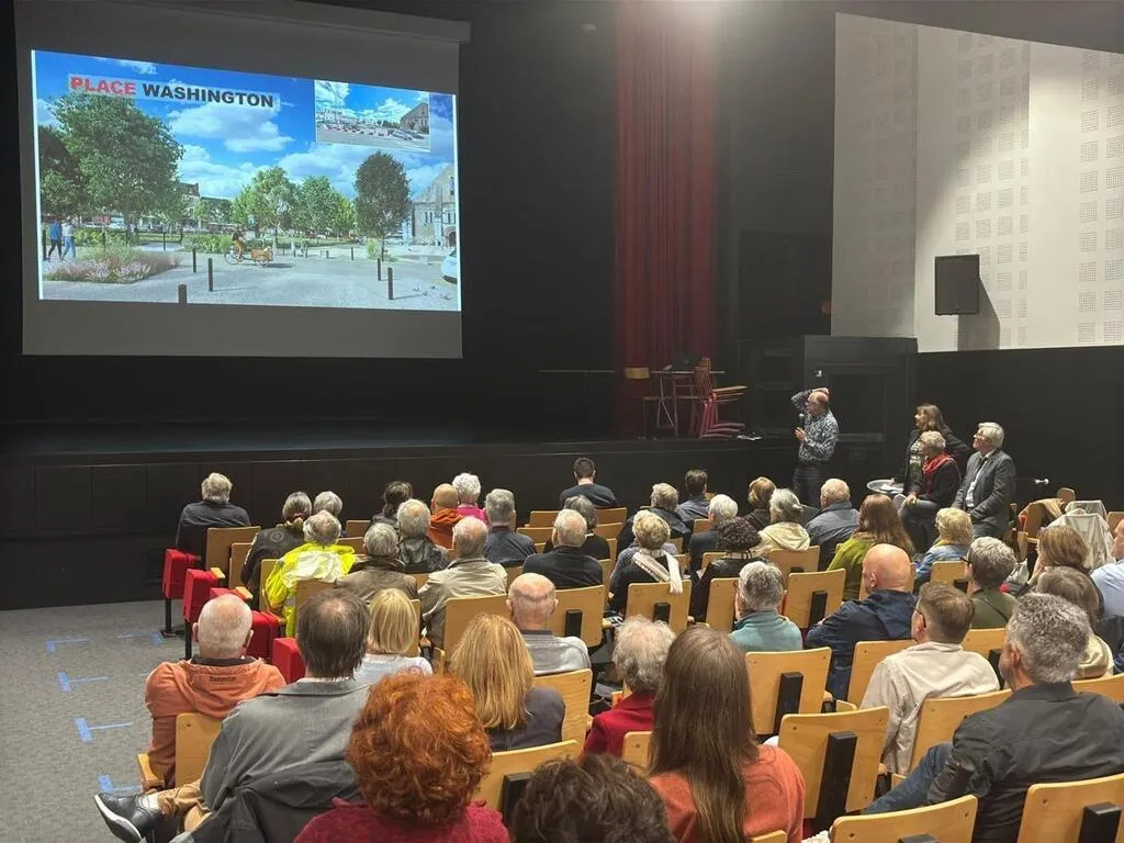 Une centaine d’habitants étaient réunis pour assister à la présentation des travaux des chronolignes sur la rue Chanzy et la place Washington. © Le Maine Libre