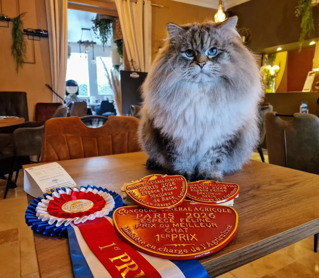 Il réside à Thorigné-sur-Dué avec ses maîtres, dans la Sarthe : Musrafy Gigolo, une grosse boule de poils de 9 kg, a été élu plus beau chat du Salon de l’agriculture, devançant 2 976 autres félins.