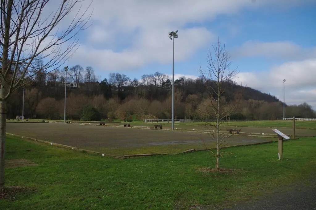 Deux ombrières avec panneaux photovoltaïques seront installées sur la moitié des terrains de pétanque, à proximité du local du club. © Le Maine Libre