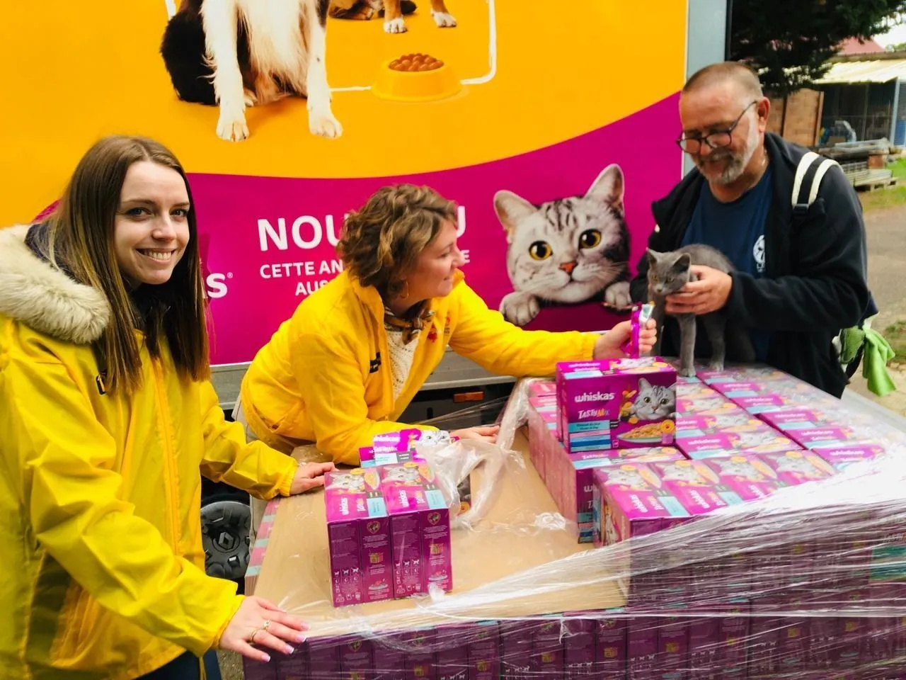 Les 160 petits protégés du refuge animalier LDAS 72 de Neuville-sur-Sarthe (Sarthe) ont reçu 1 700 kg de croquettes Pedigree et de sachets fraîcheur Whiskas ce mardi 23 septembre 2025.