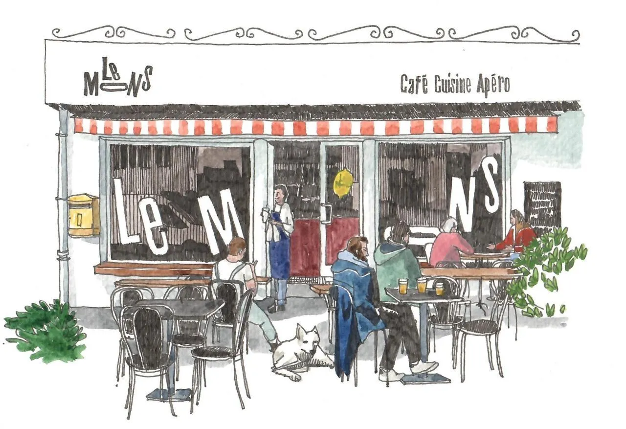 Le restaurant Le Mons, à Vannes (Morbihan) vu par l’illustratrice Joëlle Bocel. © Joëlle Bocel