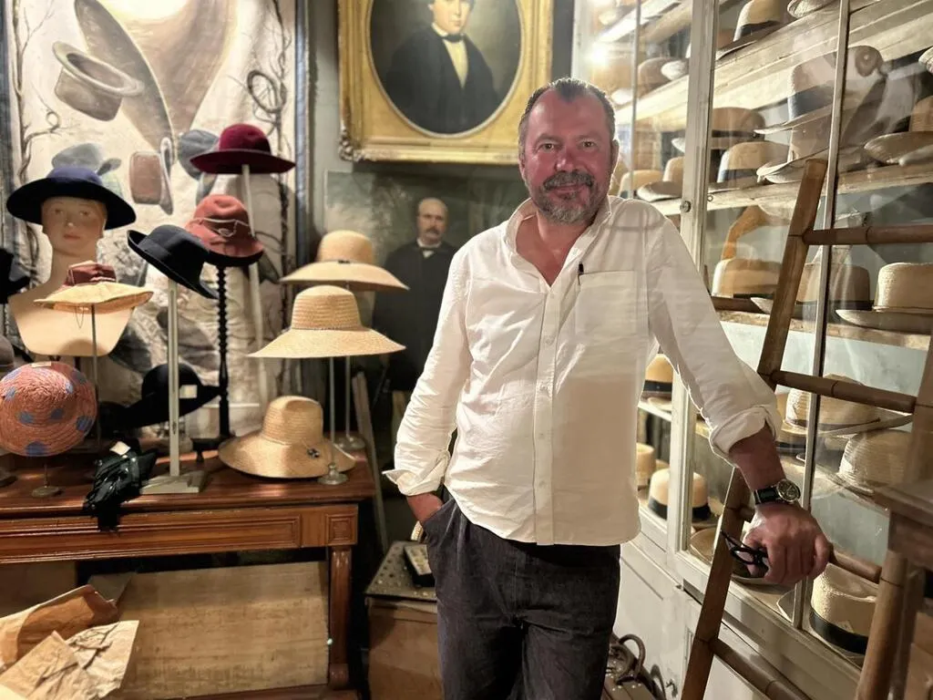 Grégoire Courtin au milieu des couvre-chefs de la chapellerie Danteaux. Ce Sarthois tient un musée de boutiques anciennes à La Chartre-sur-le-Loir. © Ouest-France