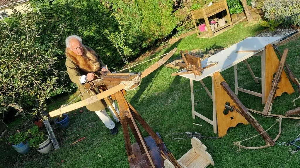 Alain Breton a la passion des armes anciennes qu’il prend plaisir à réaliser après force documentation, comme cette une arbalète à tour. © Ouest-France