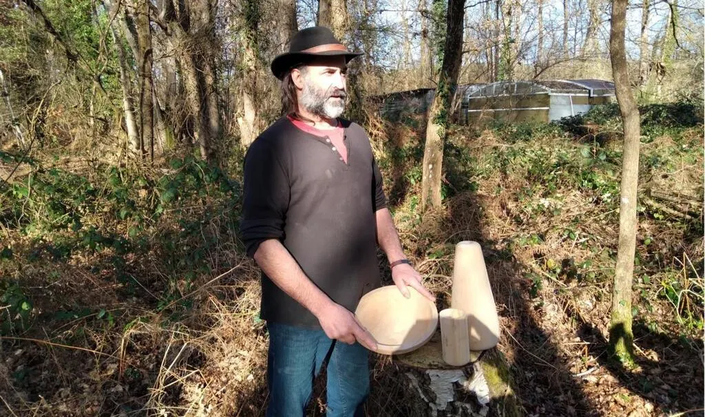 Aldo avec des ustensiles en bois de bouleau. © Le Maine Libre