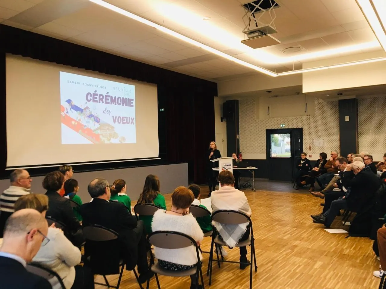 Les vœux attirent toujours les administrés intéressés par la vie de leur commune comme ici l’an dernier à Neuville-sur-Sarthe. Véronique Cantin, maire, qui ne se représente pas, avait présenté les projets et les vœux 2025 au public à la salle polyvalente. © Archives Le Maine Libre.