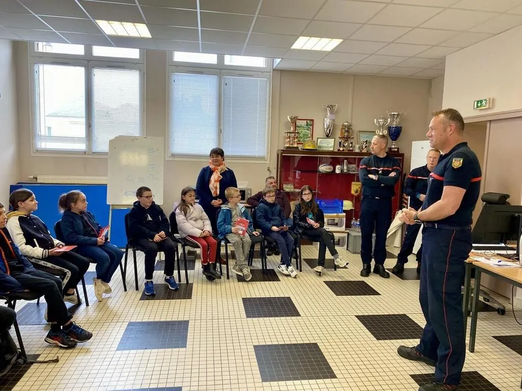 Ce sont donc 17 élèves des écoles de Mamers et de Neufchâtel-en-Saosnois qui ont passé une heure aux côtés des soldats du feu mamertins. Ils ont d’abord été accueillis dans la salle de réunion du centre secours. C’est ici que les sapeurs-pompiers professionnels du centre qui compte également plusieurs pompiers volontaires, ont présenté les missions des soldats du feu :  Sauver les gens et les animaux. Nous sommes aussi présents pour assurer la protection des biens et de l’environnement. Néanmoins, chaque personne à un rôle à jouer dans le cadre des gestes qui peuvent sauverÂ
