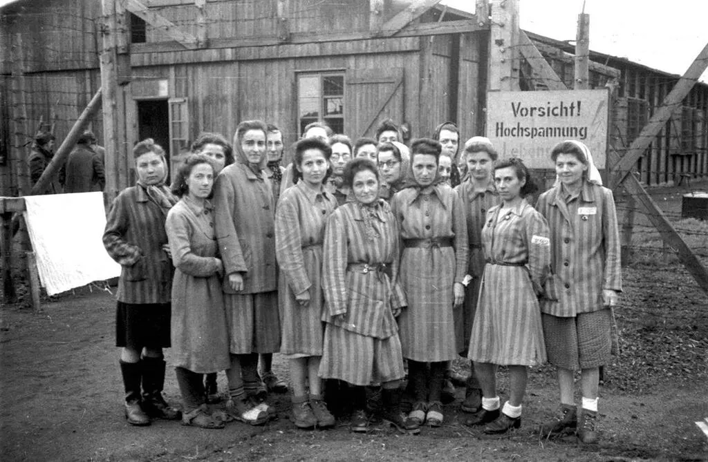 Parmi ceux qui ont connu les camps de concentration, figurent de nombreuses femmes, regroupées à Ravensbrück (ici photographiées à Lemmer, aux Pays-Bas). Anne-Marie Bizot est la deuxième en partant de la gauche, elle cache en partie sa sÅ“ur Renée. Geneviève est la quatrième. © Daniel Potron