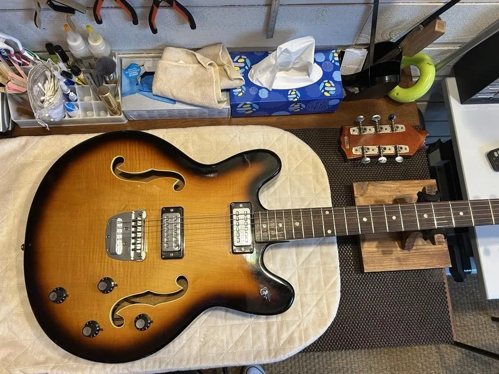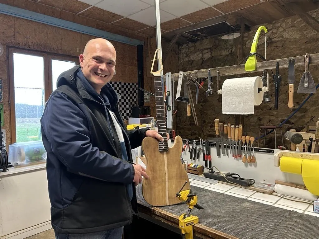 Ancien militaire et musicien depuis l’adolescence, David Chaineau s’est lancé comme auto-entrepreneur à Oizé près de La Flèche (Sarthe) en septembre 2025. Dans son atelier, il entretient, répare et restaure guitares et basses, avec une approche artisanale et humaine.