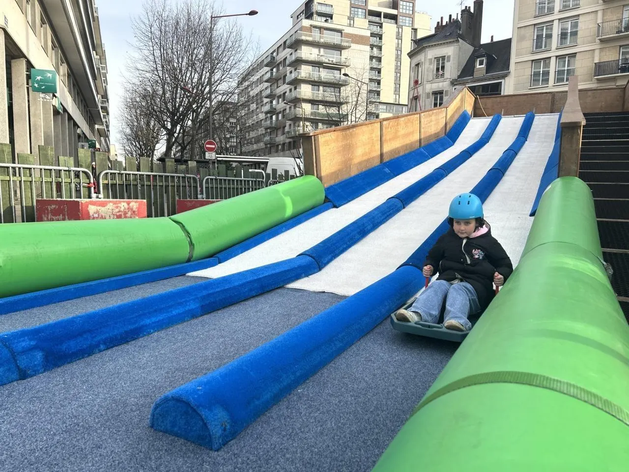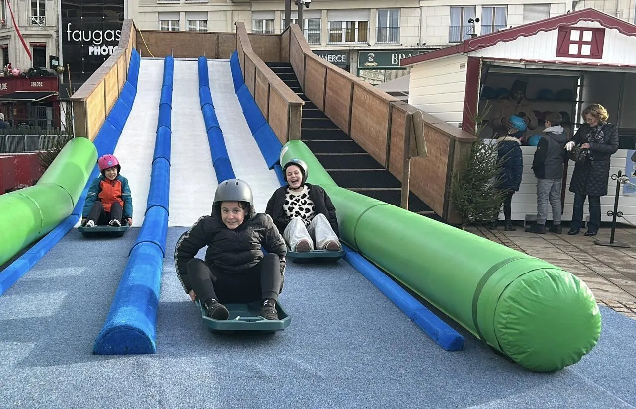 Cette année, petits et grands glissent en luge au marché de Noël du Mans... |