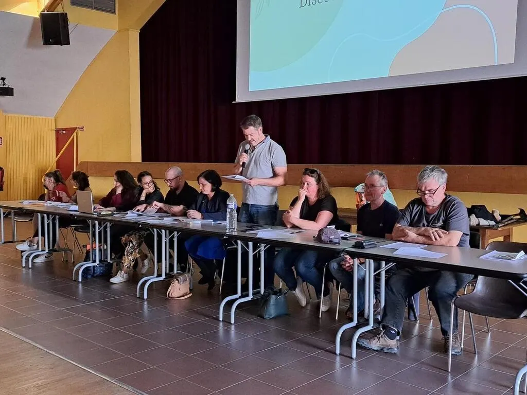 Tony Belloir, les animateurs et le bureau de la Coulée Douce accueillent le public de l’assemblée générale. © Ouest-France