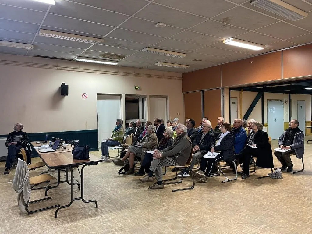 photo  les adhérents suivent avec attention le diaporama de la rétrospective 2025 réalisé et présenté par la secrétaire, michèle archambault.  ©  le maine libre 1