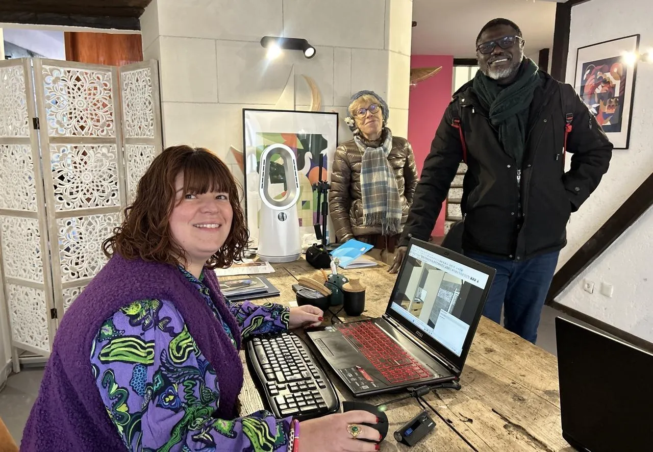 Océane Millet, ici avec Mamadou Mbaye, conseiller Adie, et Françoise Vigneron, bénévole sur les prêts mobilité. © Le Maine Libre