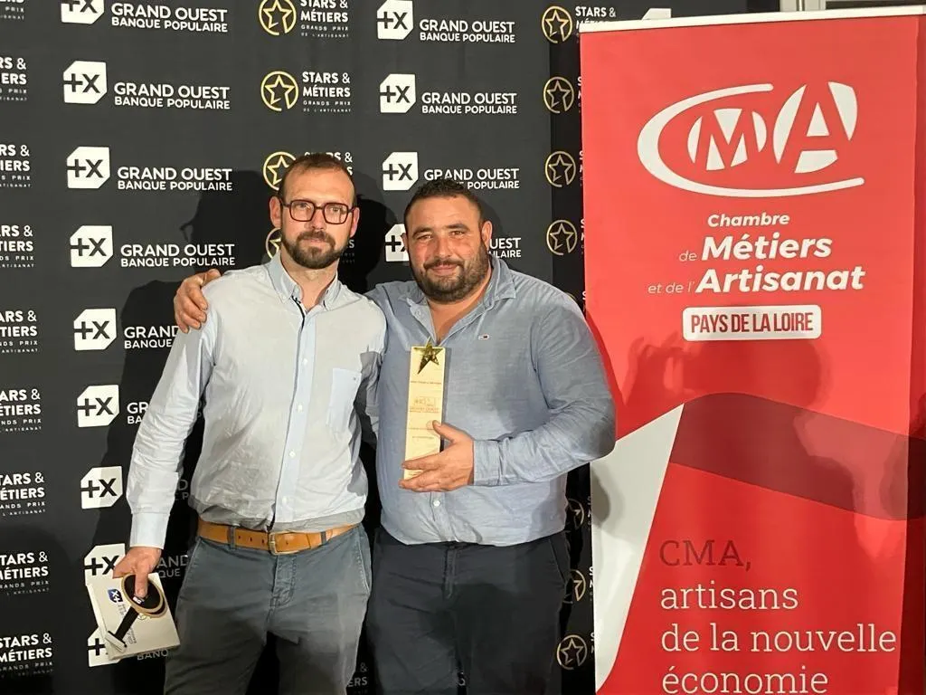 Sur une étagère du coin repos dans leur entrepôt à Juigné-sur-Sarthe, Gérald Jouis et Grégory Souchu, les gérants de la société JS Couverture, ont posé le trophée qu’ils ont remporté le ...