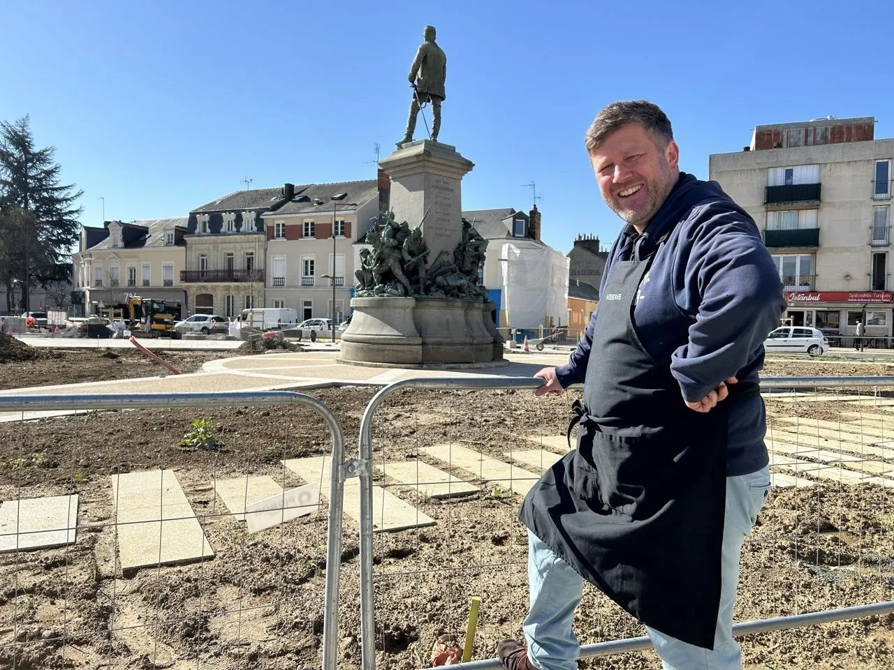 En travaux depuis un an et demi, la place Washington s’apprête à rouvrir. Une bonne nouvelle pour Pierre-Marie Gastebois, président de l’association locale des commerçants. © Le Maine Libre