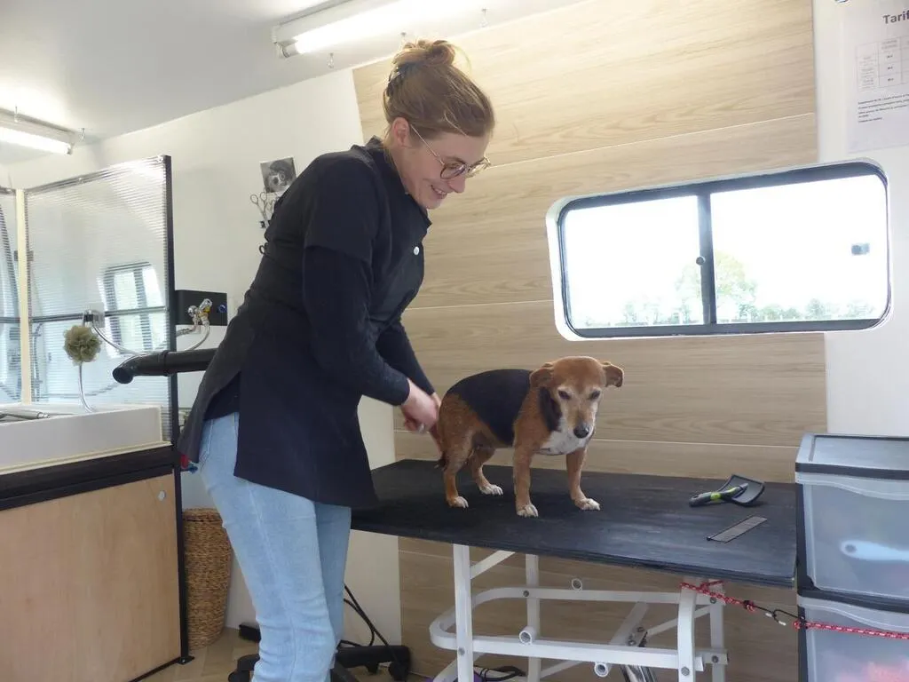 Cette Sarthoise assure le toilettage des chiens à bord de son camion... |