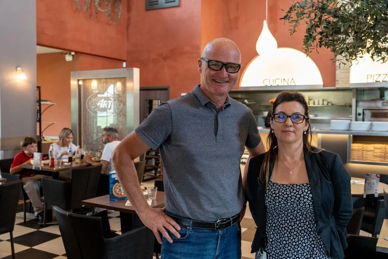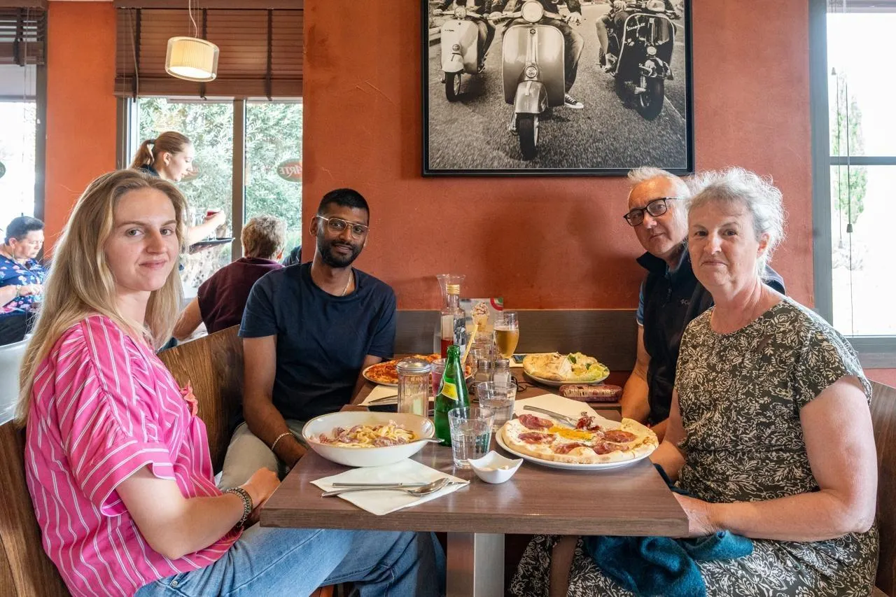 Olivier, Audrey, Yohan, Olivier et Nathalie étaient attablés avant midi à Del Arte, ce samedi à Saint-Saturnin. « On préfère sortir de l’autoroute et faire un repas classique, dans le calme, sans stress. » © Le Maine Libre - Xavier SARRAT