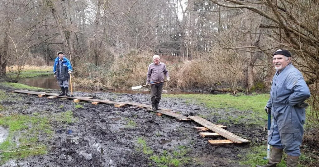 Session de préparation et d’aménagement des parcours en zones humides par les membres des deux associations © Randonneurs Parignéens.