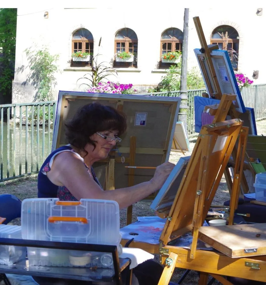 Les peintres avaient posé leurs chevalets près du moulin. © Le Maine Libre
