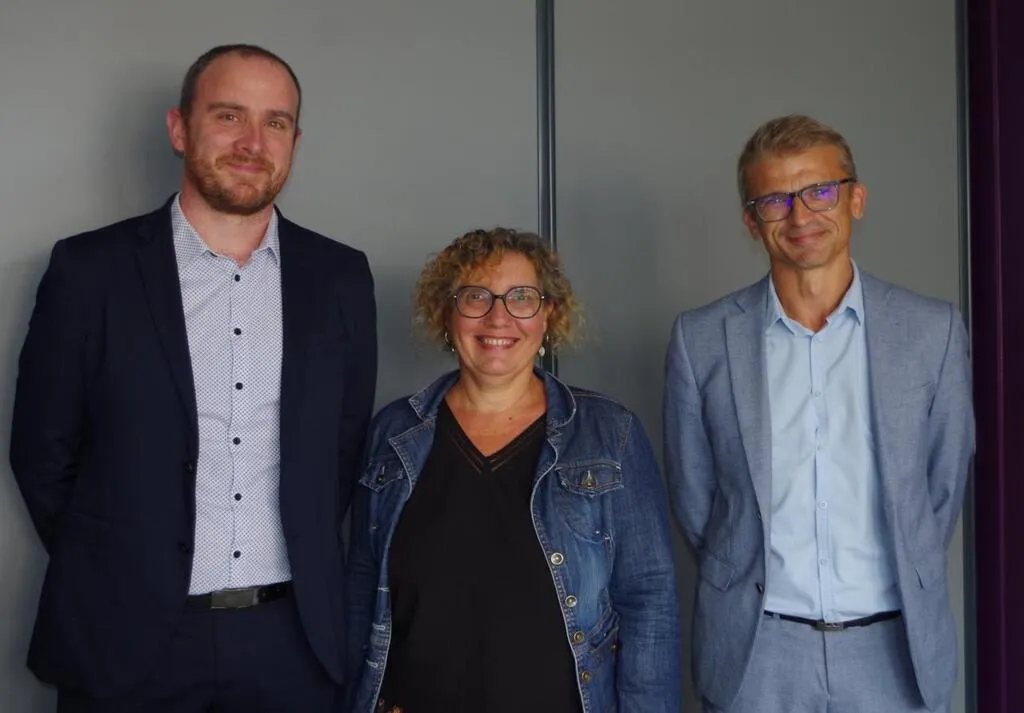 Guillaume Dequirez, principal adjoint, Estelle Jean, secrétaire générale et Julien Frenal, principal, entament tous les trois leur 2e année au collège de Champagné. © Le Maine Libre