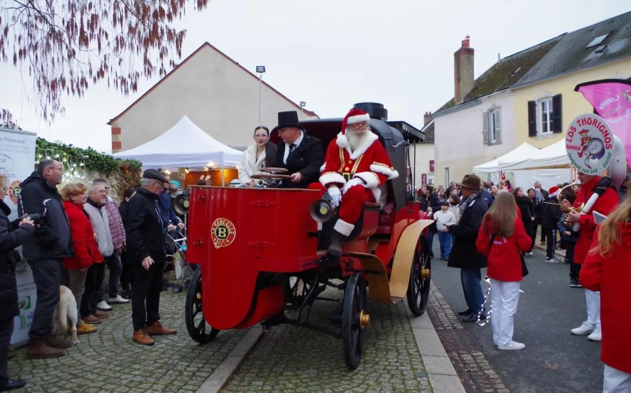 C’est bon, le père Noël a bien repéré Champagné sur son GPS. Samedi après-midi, c’est à bord de la e-Mancelle, un véhicule mis au point en 2022 par l’Arma Bollée, réplique électrique de la Mancelle de 1878 d’Amédée Bollée, qu’il a fait son apparition. Un véhicule assorti à sa tenue rouge.