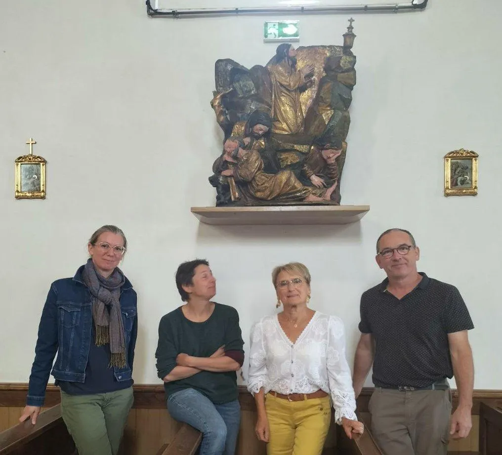 Deux visites guidées du Ditep Les Aubrys (extérieurs et quelques locaux) ont été assurées par l’établissement. Trente-quatre personnes étaient au rendez-vous pour cette première. Les bénévoles de la commission histoire de l’association Animations tourisme Champagné présentaient la chapelle du cimetière (XVIe siècle) et la salle des meules, au moulin. « Dans l’église, les visiteurs ont été invités à découvrir, entre autres, le relief en bois « Le Christ au jardin des oliviers » que nous venons de récupérer et de réinstaller après l’avoir fait restaurer » précise Jocelyne Lauger, ajointe au maire, chargée de la culture. « Agnès Blossier, restauratrice et Alexandra Buvignier, chargée d’études du patrimoine mobilier, ont ainsi expliqué leur travail autour de cette sculpture, une œuvre espagnole du XVIe siècle. » « Lorsque nous l’avons prise en charge, ce relief était très sombre car très encrassé. Il a fallu le nettoyer et le traiter contre les insectes xylophages. Les différentes phases de nettoyage ont permis d’apercevoir des traces de polychromie qui n’étaient plus du tout visibles. Une très belle surprise. Quelques parties fragilisées ont aussi été consolidées » souligne Agnès Blossier.