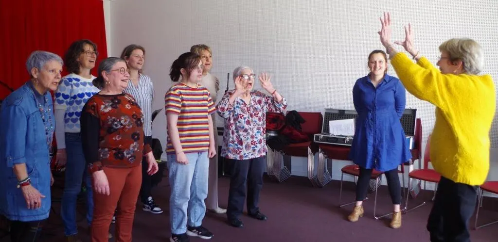 Des adhérentes de Femmes solidaires, à Champagné, se préparent à assurer la première partie du spectacle « Textazik - Terre de Femmes », des lectures mises en musique, vendredi 7 mars, proposé par la médiathèque, dans le cadre de la Journée internationale des droits des femmes. Samedi après-midi, elles se sont ainsi préparées avec Margot Châron et Gilbert Thiéry de la compagnie À trois branches. « Cette soirée résulte d’un partenariat conclu avec la médiathèque », note Marie-Françoise Laude, trésorière de Femmes solidaires.  On va d’abord travailler à sortir votre voix, à avoir moins d’appréhension en face d’un public grâce à quelques exercices… Pour un même texte, il y a une infinité de façons de le dire : en riant, en chuchotant, en déclamant à la manière d’une tragédie grecque, en mimant la surprise…Â
