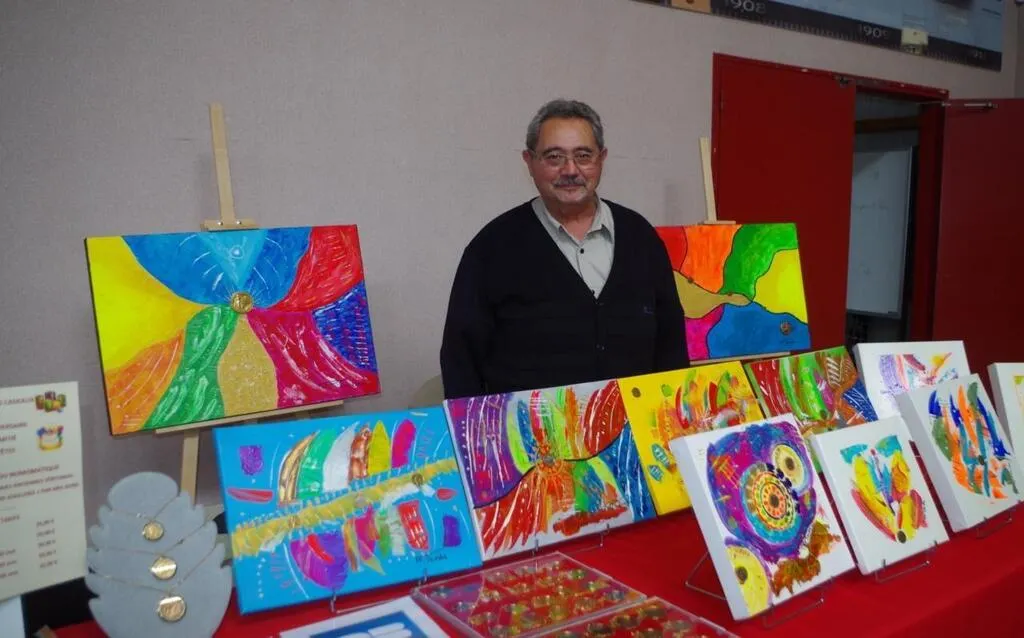Artiste-peintre numismate, il propose d’étonnants tableaux, gais et remplis de couleurs. « Je suis passionné par la numismatique, l’étude des pièces de monnaies et des médailles, depuis de nombreuses années ; je suis devenu collectionneur au fil des ans. J’intègre donc parfois des pièces de monnaies véritables, françaises ou étrangères de différentes époques, dans mes tableaux » explique-t-il.