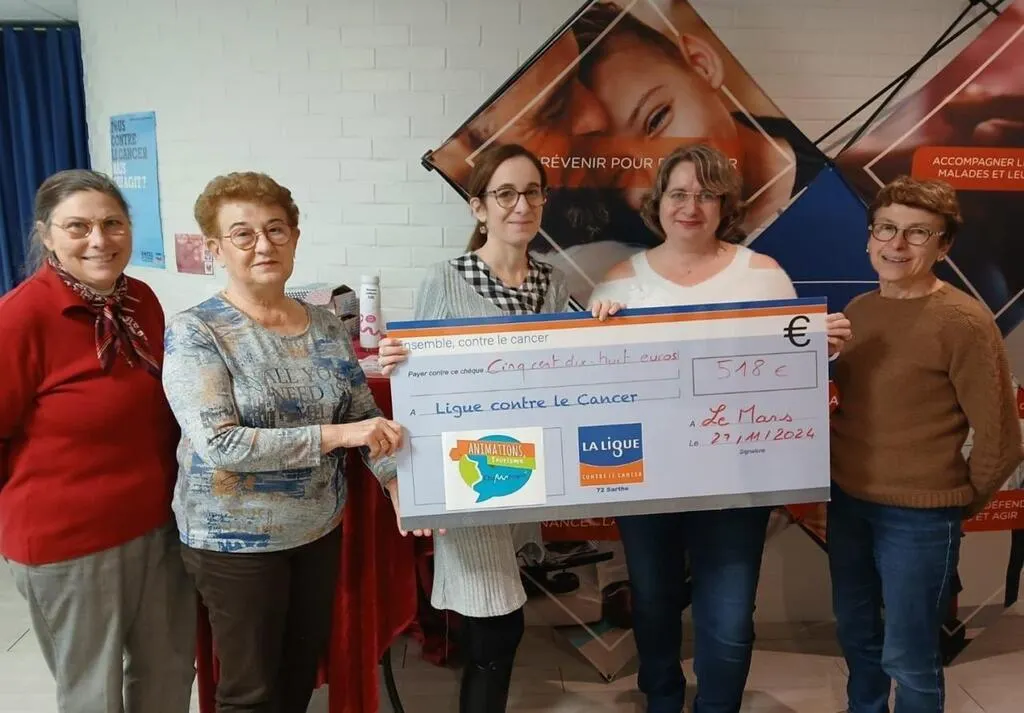 Un chèque de 518 € représentant les dons collectés lors de la journée « Ensemble contre les cancers » de Champagné vient d’être remis à la Ligue contre le cancer. © ML