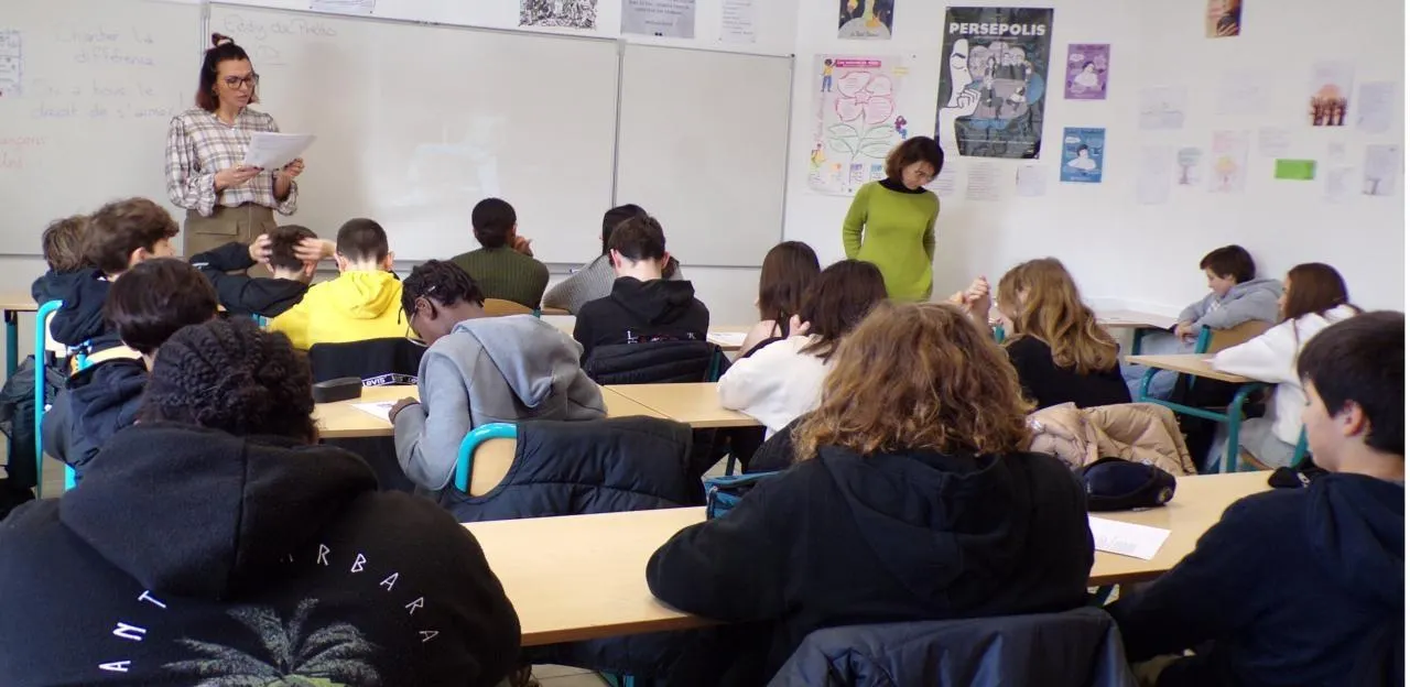 La classe de quatrième A travaille à partir d’une chanson d’un artiste français engagé, Eddy de Pretto, « Kid ». © Le Maine Libre