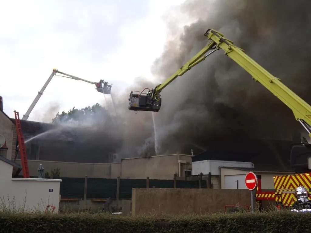 Le sinistre est impressionnant. De nombreux sapeurs-pompiers sont encore sur place à 16 h 45 alors que l’épais nuage ...
