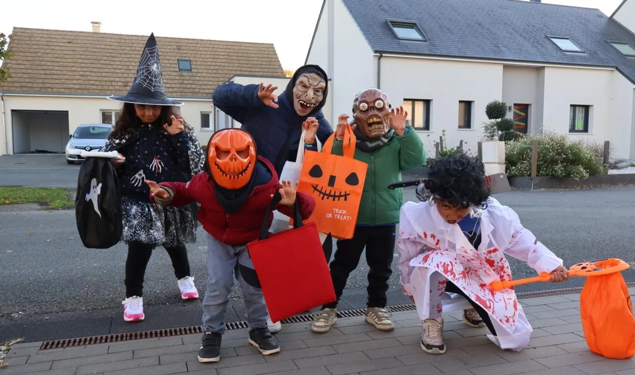 Manel, Quentin, Théo, Clément et Nawfel, jeunes voisins du quartier du Pont, ont passé les vacances de la Toussaint à jouer ensemble. Ils ont aussi préparé Halloween et ont redoublé d’imagination pour se déguiser. Vendredi soir, fiers de leurs costumes, les petits amis ont sonné aux portes du quartier, terrorisant gentiment les habitants en assenant : « un bonbon ou un sort ? » © Ouest-France
