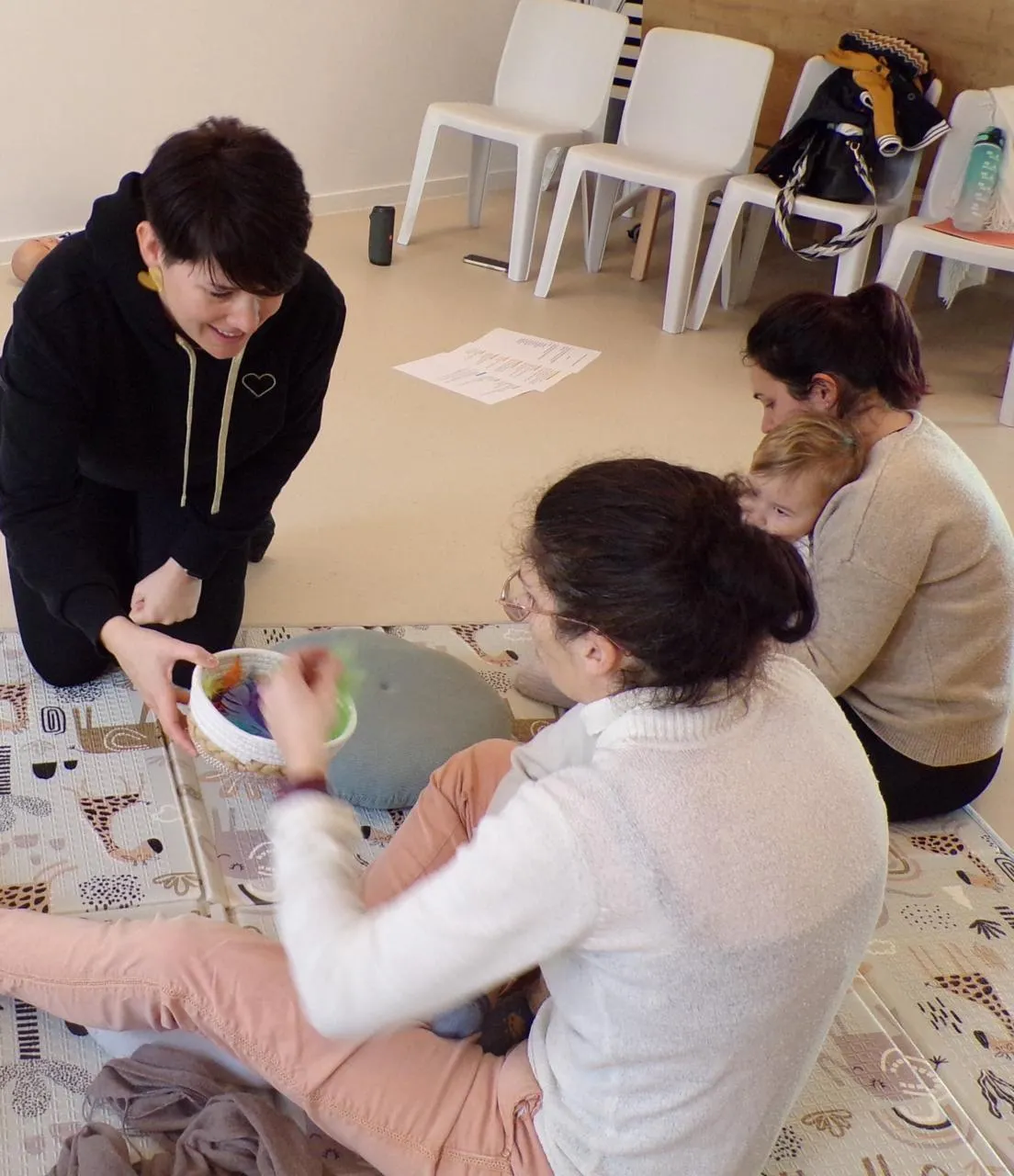 Animées par Charlène Buon, infirmière puéricultrice et fondatrice de l’association Au cÅ“ur de la naissance, les activités étaient pensées sous forme d’exercices simples, réalisées en duo et toujours sans obligation de participation. Les deux séances qui ont permis un  lien hors du tempsÂ