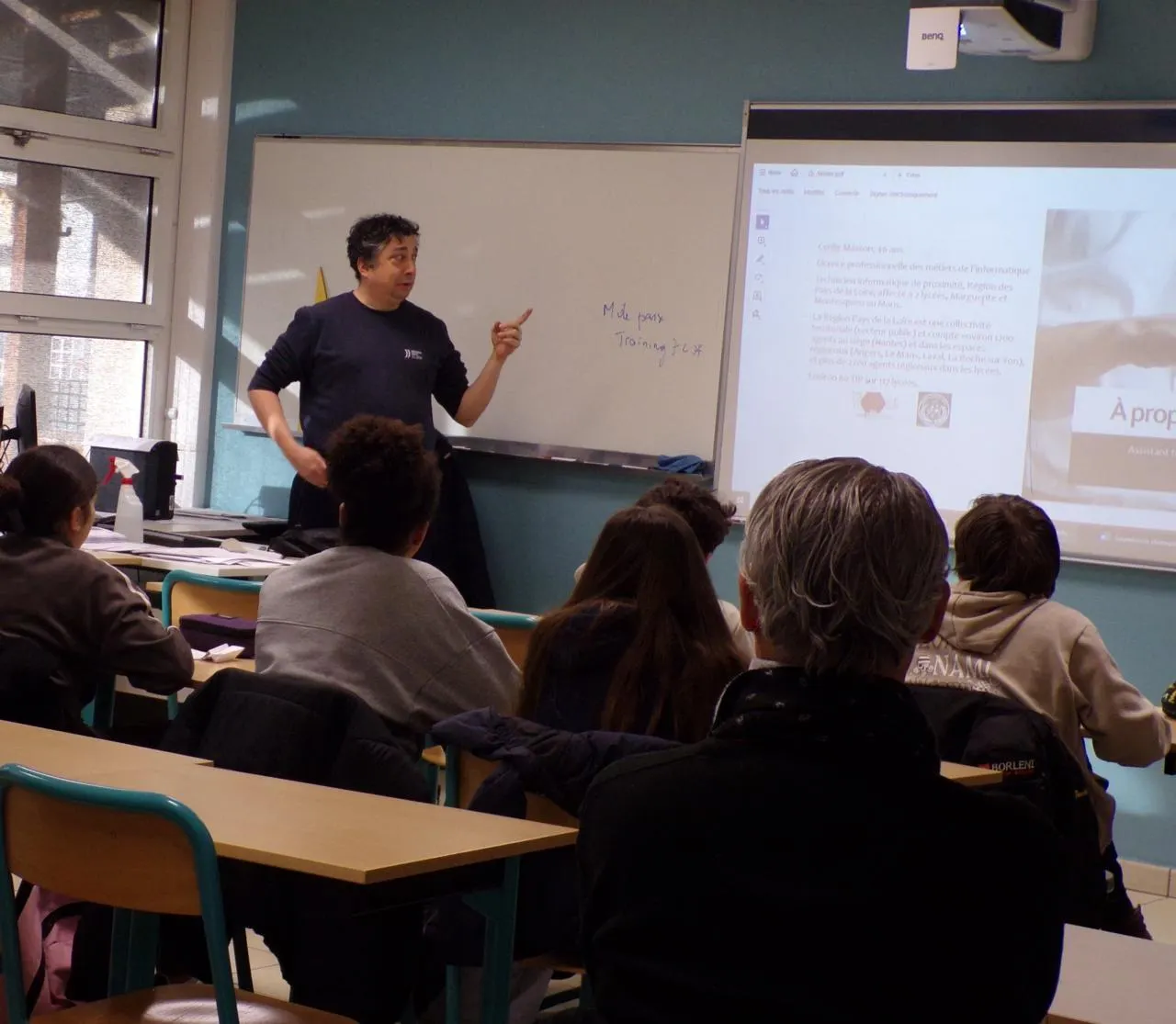 Un des intervenants au forum des métiers au collège Jacques-Peletier de Changé. © Le Maine Libre