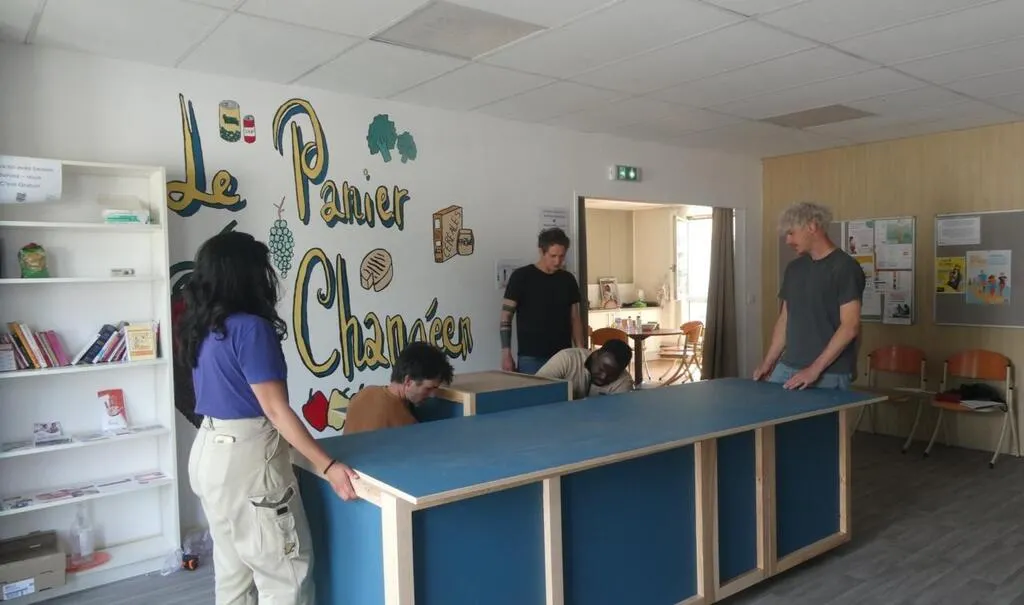 Les quatre stagiaires se sont affairés à installer le meuble dans les locaux du Panier Changéen, dont Alyssia, qui témoigne :  Faire un chantier pour un magasin associatif, je trouve ça cool, ça va servir à un grand nombre de gens.Â