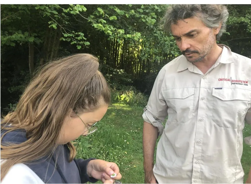 Pierre Carret et Clémentine Bauchet. Cette dernière a déjà découvert les particularités de la pâquerette. © Le Maine Libre